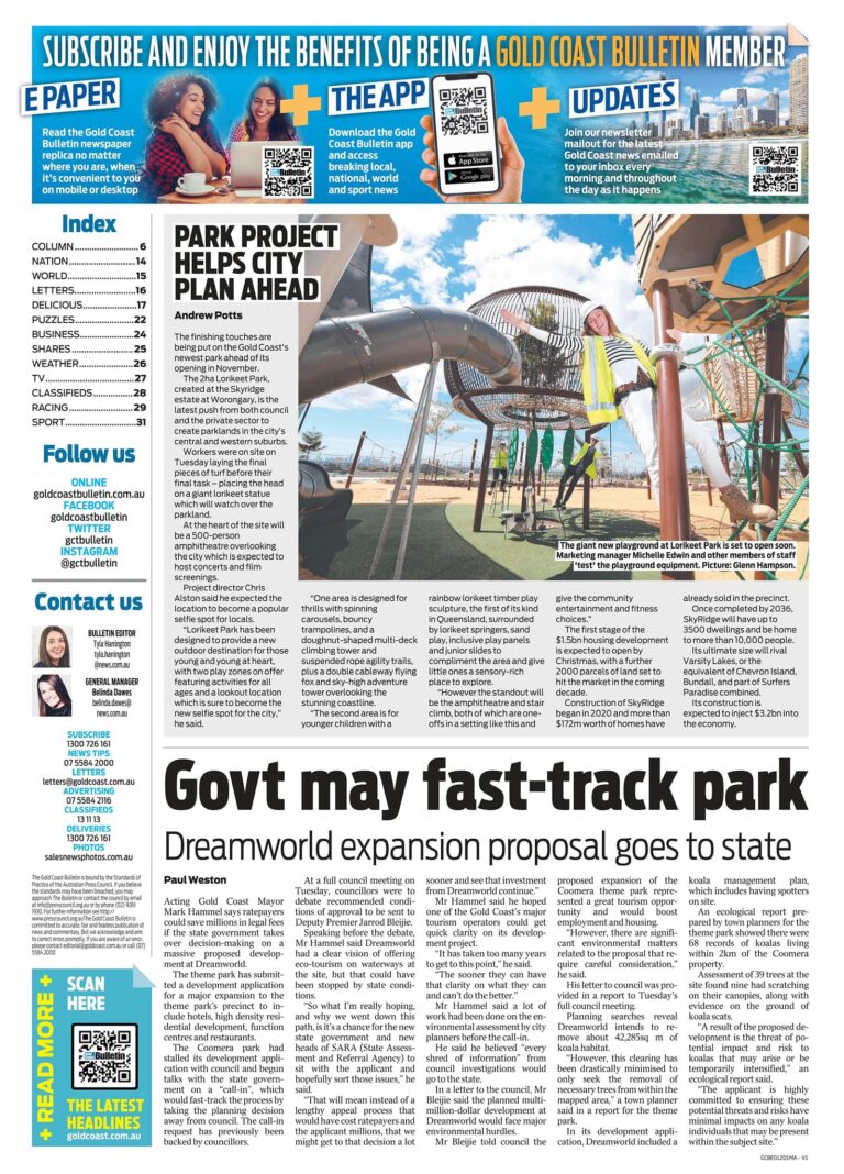 The finishing touches are being applied to what promises to be the region’s premier family playground. The spectacular 2-hectare Lorikeet Park at SkyRidge is about to transform outdoor fun for locals.